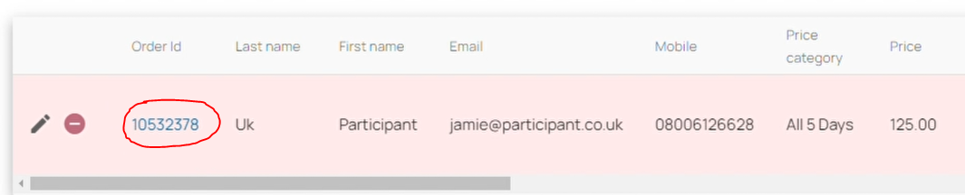 2. Within the event's registration list, you can click on the order ID of the order you wish to approve.