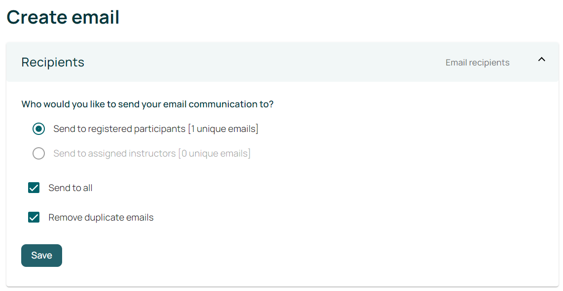 Alternatively, you can keep the settings as they are to send the email to all registered participants on your event.