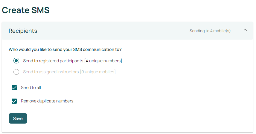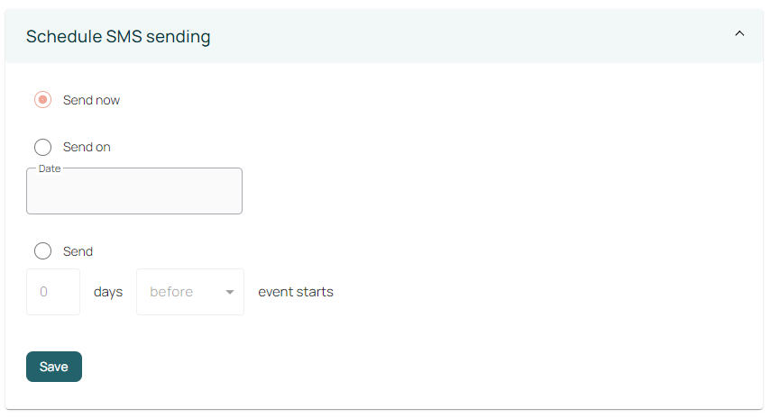 You can either send the SMS message immediately, schedule it to be sent on a predetermined date or time, or alternatively, you can set it to send a number of days before or after the event has taken place.