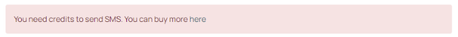 Please ensure you have purchased credits to enable you to send SMS messages; if you have not, a box will display in this section.