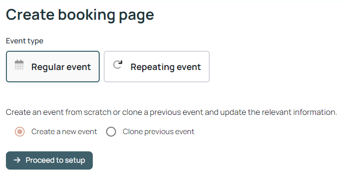 3. Click Regular event, Create a new event and then Proceed to setup