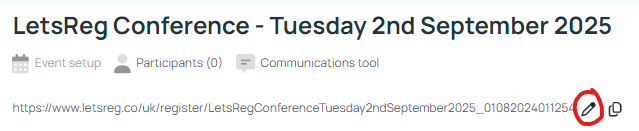 22. The LetsReg system will automatically generate a link for your event page. If you wish to modify this, click on the pencil icon.