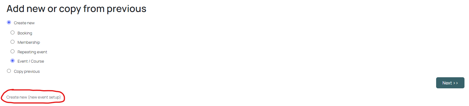 2. Select Create new and Create new (new event setup)