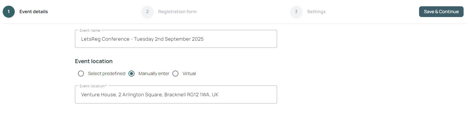4. Add a title for your event, then enter the venue address.